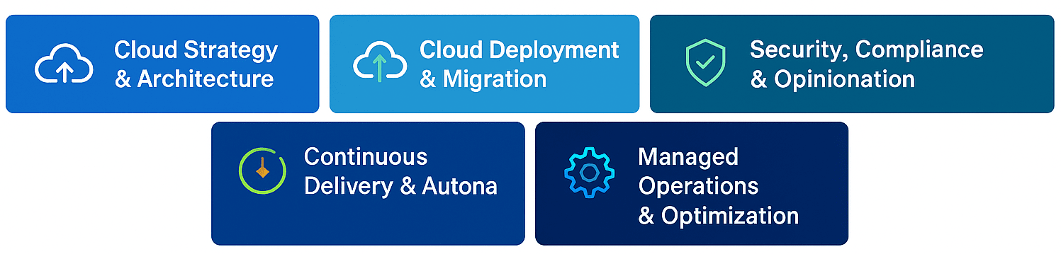 We design and build end-to-end automation pipelines: from code commit to deployment in cloud, infrastructure-as-code (IaC), automated testing, monitoring and rollback.
